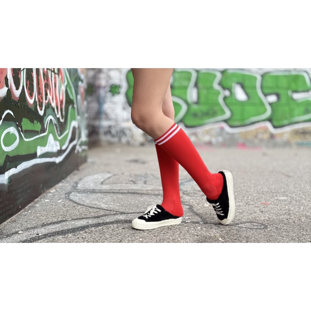 Гольфы спортивные красные с белыми полосками до колена | Ростекс