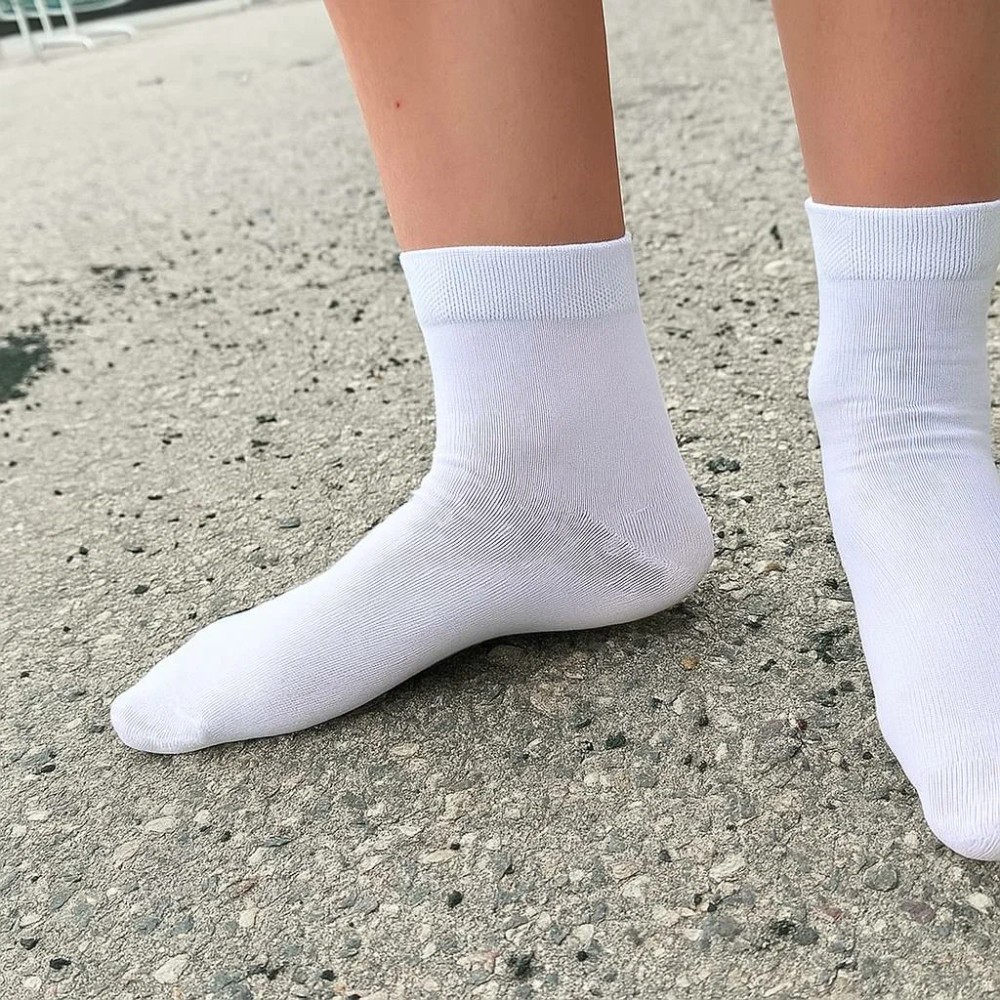 Носки белого цвета изготовлены для повседневного использования. Удобная длина носков и нежная резинка позволяет провести в них целый день, не испытывая дискомфорта.