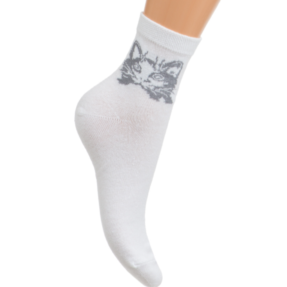 Белые носки с принтом “кошка” — стильный акцент на каждый день, размер 38-40 | Ростекс